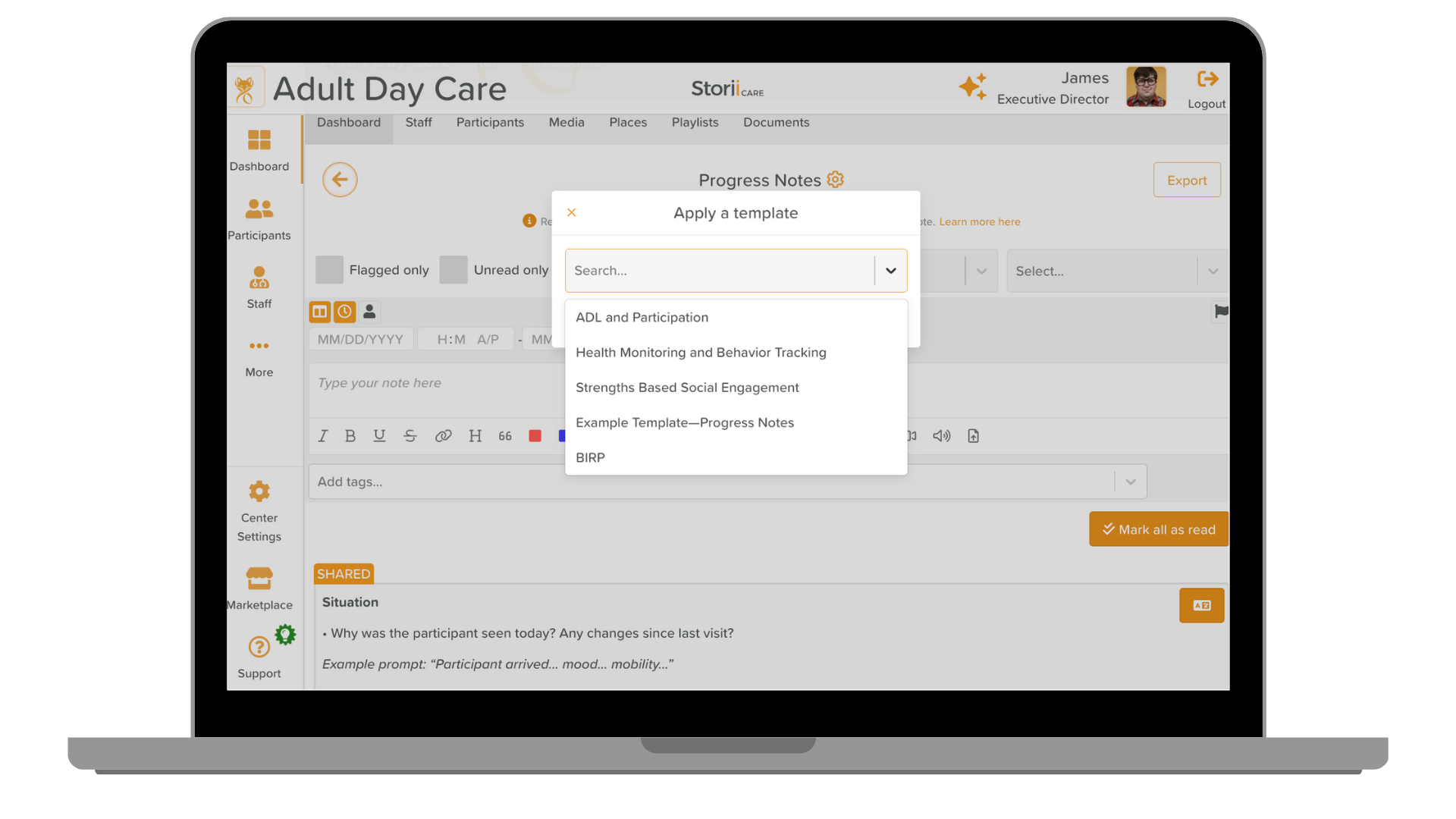 Give staff a consistent framework for documentation with reusable templates. Great for SOAP notes, Shift Handovers, Wound Care Follow-ups, and more. Head to Progress Notes settings to enable this functionality and create your own Note templates!